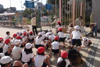 今日は人権学習で、チューリップの花を植えました。