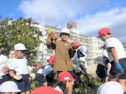 1学期に、生活科で植えたサツマイモを収穫しました。とっても大きなサツマイモが、ゴロゴロ採れました!