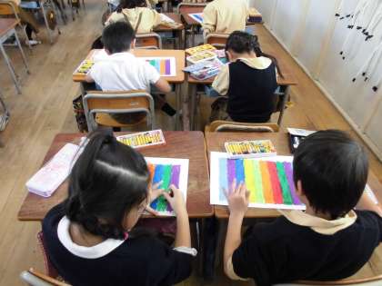 画用紙にパスで色をしっかりとぬりました。