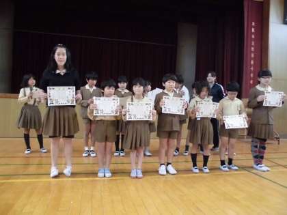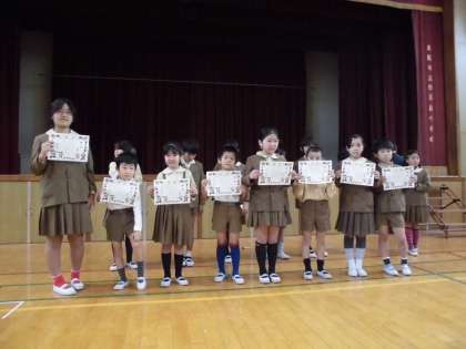 今日の児童集会は、先週実施した全校遠足〜オリエンテーリングの表彰式をしました。クイズやゲームでの点数だけでなく、「きちんと整列していたか」「あいさつをしっかりできていたか」などで、チームワーク点も加算されました。