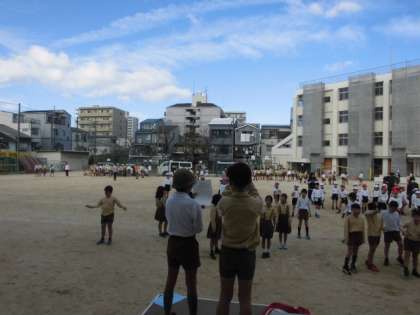 3学期の体力向上の取り組みは、かけあしタイムです。