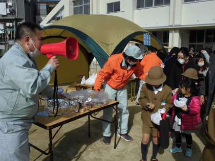 おみやげに「乾パン」と「アルファ米の炊き込みご飯」を防災リーダーからいただきました。