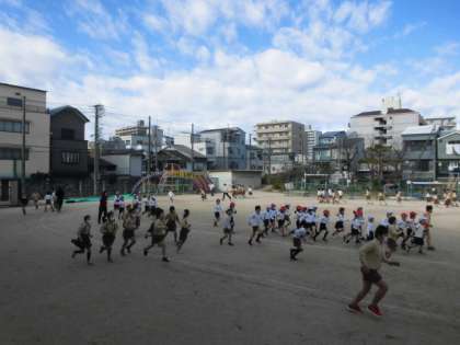 5・6年生・・・トラック14周(約1500m)タイムを計る