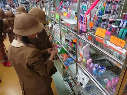 本日は、仕入れ先へ見学に行き、仕入れるものを調査しに行きました。また、どのように売られているか、どんな接客をしているか、値札やポップの付け方など、販売の工夫もたくさん見学しました。