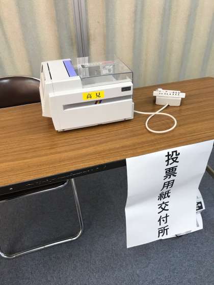 出前授業で区役所の方が来られて、選挙について勉強しました。実際に選挙で使う備品を持って来て見せていただきました。