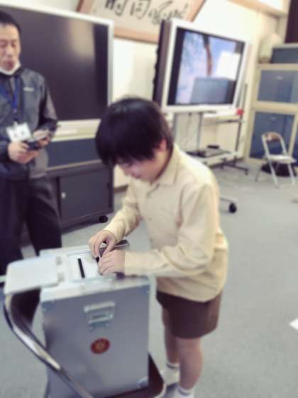 実際に選挙をしてみました。投票には紙と鉛筆が使われていて、思っていたよりも簡単にできることがわかりました。一人一人が投票できるように、様々なサポートもあることや、投票用紙には秘密が隠されていることなどがわかりました。選挙に関心がもてたと思います。