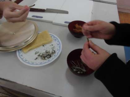 みそ汁は、煮干しからだしを取り、おいしいみそ汁が作れました。