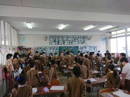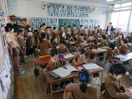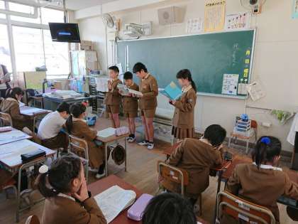 5年生は、日頃頑張っていることや、楽しかったことなどを、ていねいに説明できました。それを、聞く3年生は、わくわくドキドキ、期待に胸いっぱい!といった表情で聞いていました。最後は「ありがとうございました!」と元気に挨拶できました。