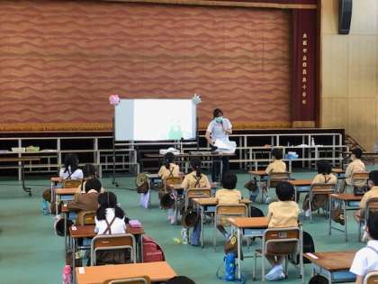 臨時登校日が終わりました。朝、友だちと出会い、チャイムが鳴り、授業のはじめのあいさつをして勉強をして…と、少しではありましたが、いつもの学校を取り戻せました。これも一重に、検温、カードの記入、マスクの着用など、保護者のみなさまのご協力のおかげです。ありがとうございます。子どもたちは、手洗いの習慣が身に付いてきました。これからはもっと暑くなるので、子どもたちは、マスクがわずらわしくなってくると思います。こまめに水分補給をさせ、「自分を守ることは、他人を守ること」の気持ちを大切に、マスクの着用を含め、正しい感染症予防の指導を続けていきます。