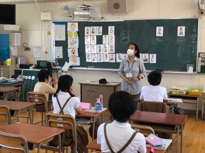 3枚目 6年生は英語の授業をしていました。C-NETのアナ・リザ先生と「Nice to meet you!!」アナ・リザ先生は、金曜日に来てくれます。他の学年にもいきますよ!お楽しみに!