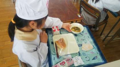 前を向いて静かに食べることができました。あつあつのお味噌汁をおいしくいただきました。