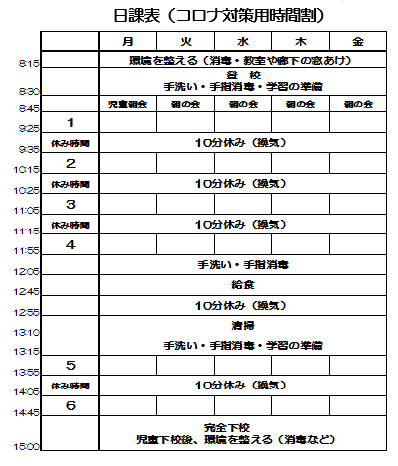 来週から通常授業となり、コロナ対策用時間割で生活をします。