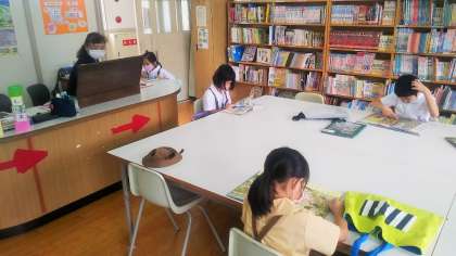 1年国語:図書室で本を読んでいます。本の世界にひたっています。