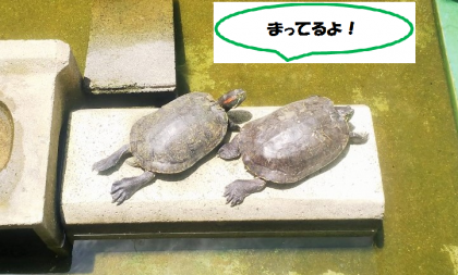 今から夜にかけて、雨との天気予報です。カメは、今しかない!とばかりに日なたぼこをしています(おそらく)。足の長さに驚きました。