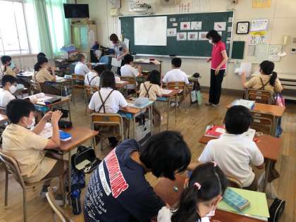 5年生:玉結び、玉止めを習得中。集中して取り組んでいます。きゅっとできるようにがんばってね!