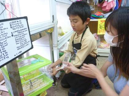 四貫島商店街で、一日店長をしました。子どもたちは、昨年の体験を生かして一生懸命に仕事をし、三年生をリードする姿も見られました。