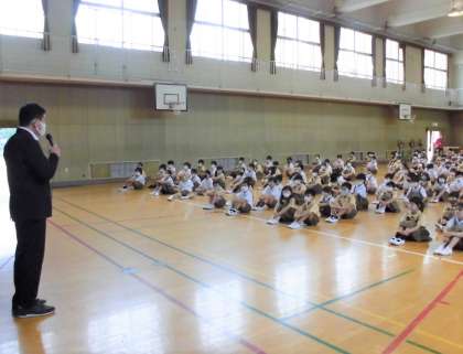 今日の児童朝会で校長先生から「いじめ」についての講話があり、子どもたちは真剣な表情で、一生けん命に聞いていました。また各学級でも担任からの話があり、みんなで「いじめ」について考えました。