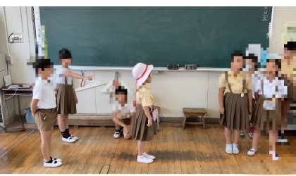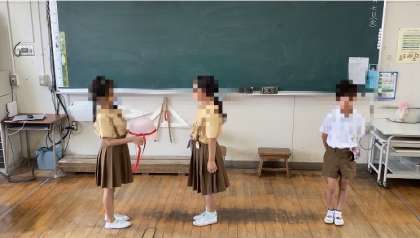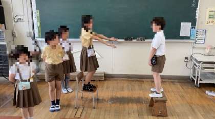 今日は1学期最終日。国語の学習では、『名前を見てちょうだい』の劇を行いました。主人公のえっちゃんや、物語に登場するきつねや牛、大男になりきって体を動かしたり、声色を変えてみたり、様々な工夫が見られました。また、劇の様子は懇談会等の機会にお見せできたらと思います。