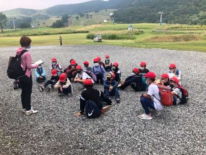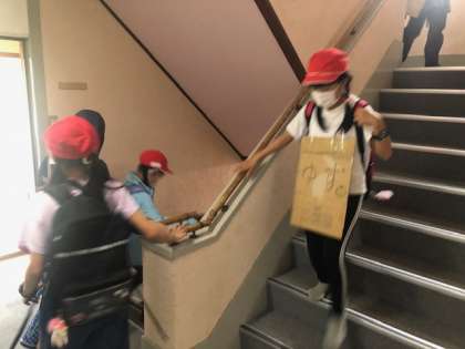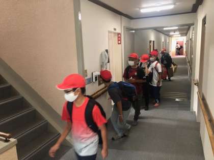 部屋に入ってから、登山の用意をして、避難訓練をしました。