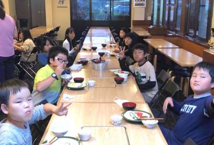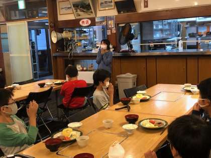 夕食の時間になりました。1日活動して、お腹がすいたのか、子どもたちは食欲旺盛です。何度もおかわりをしていました。