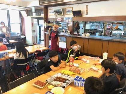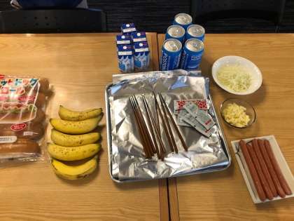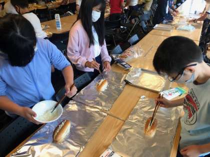 朝食はカートンドッグを自分たちで調理しました。食堂で、宿舎の方から作り方を聞いてそれぞれが朝食の準備をしていきました。