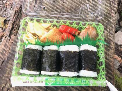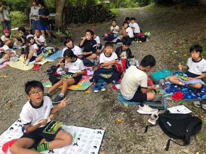魚つかみをした場所で、お弁当を食べました。食べ終わる頃に、少し雨が降ってきました。