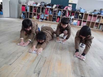 いよいよ明日は2学期の終業式です。今日は5時間目に大掃除をしました。日頃はなかなかできない場所や箇所を中心に丁寧に清掃し,床のワックスがけも行いました。明日は気持ちよく終業式を迎えられます。
