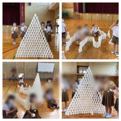 紙コップを崩さないようにそーっと歩く姿が印象的でした。みんなが集中して取り組むことができたので、あっという間の2時間でした。