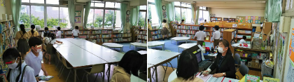 2.読書週間ということもあって、図書室にはたくさんの子がいました。羽生先生が本の貸し出しをしてくれています。