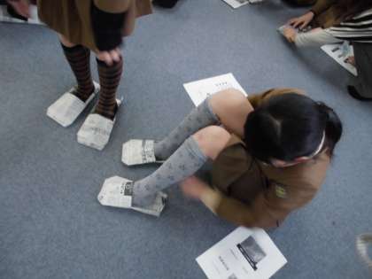 ・新聞紙で簡単にスリッパを作れてびっくりした。