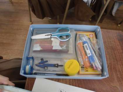自分のお道具箱の中の整理をして、いるもの、使わないもの、あまり使わないものなどにわけました。