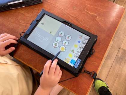 初めてのプログラミングの学習に取り組みました。今回は、viscuitというアプリを使用して、プログラミングに挑戦しました。少しの説明で、みるみる内にプログラムを組むことができるようになり、驚かされました。授業の最後には、自在に絵を動かしたり、絵を変化させたりするプログラムを組むことができるようになりました。
