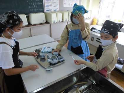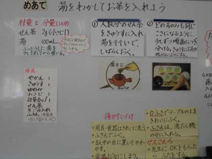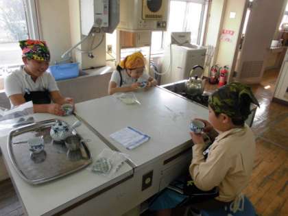 初めてコンロを触ったり、お茶の葉をきゅうすにいれて作りました。