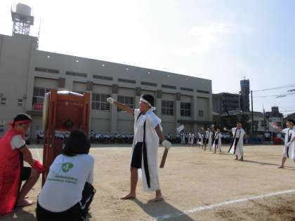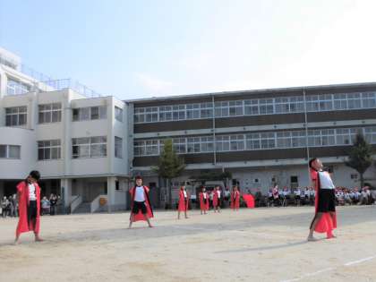 応援合戦では、「運動会の成功」「それぞれの組の応援」や「エールの交換」を力いっぱいしました。