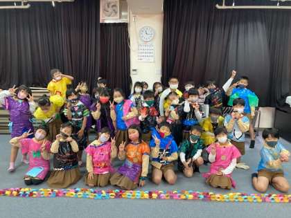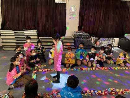 今日は、自分の作った衣装を着て、ファッションショーを行いました。みんなの前でポーズをするので、とても緊張していましたが、歩き終わった後は、誇らしげな表情が見られました。ポーズをとった際には、みんなから拍手が送られ、大いに盛り上がりました。