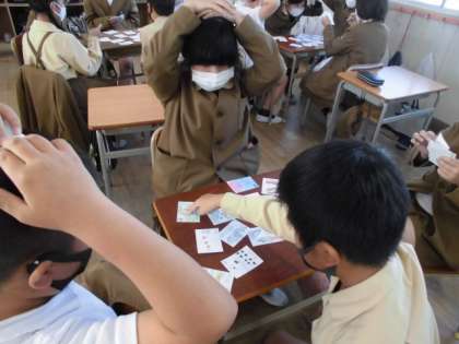 みんな、上手にまとめて、絵もかいて、かるた取りをしました。