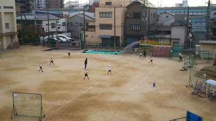スポーツ:「リアル野球盤」をキックベースでしました。ナイスキック!がネットに当たりアウト〜となった場面もありました。