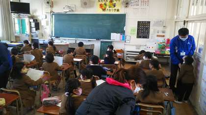 凍えるような寒い日が続いています。見守り隊の新しいジャンパーを着た校長先生とあいさつして一日が始まります。
