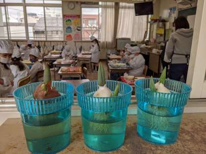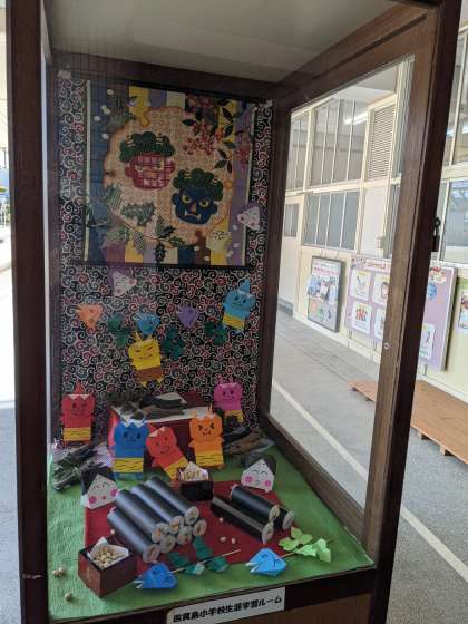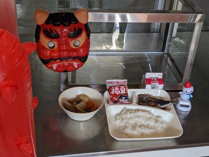昨日は節分。豆まきやのり巻き(南南東♪)などを楽しまれたご家庭も多かったことでしょう。給食も節分行事献立として、「いわしのしょうがじょうゆかけ」が出ました。給食室のケースの鬼に向かって、「おには〜そと!」をしている給食当番さんもいました。
