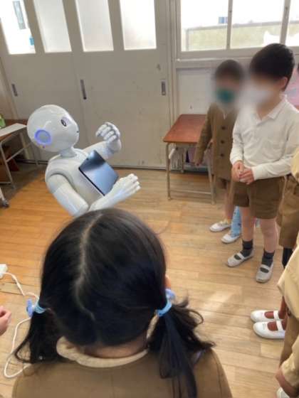 今日はPepperを使ってプログラミング学習を行いました。ロボットカーとは違い、Pepperは話すことができるので、今までとは違うプログラミングを楽しむことができました。