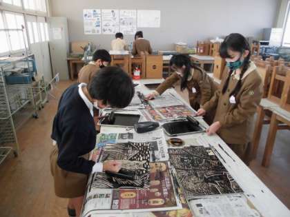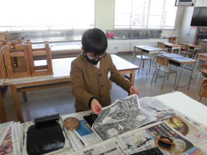 去年は、コロナで学校が休校になったので、版画を刷る作業は初めてです。