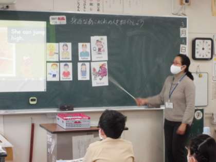 リザ先生が「進化じゃんけん」のいうゲームを教えてくださり、楽しく、プレゼンテーションができました。