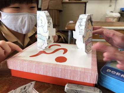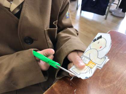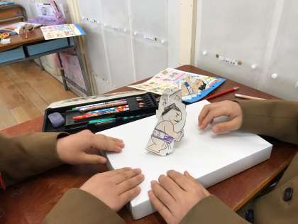 生活科でトントンずもうを作りました。お相撲さんに名前をつけました。強いお相撲さんは足のところに秘密があることや、優しくトントンすると強くなるなど、いろんな発見をしてました。