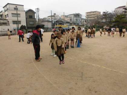 2月23日〜27日の1週間は,なわとび週間です。1年生から6年生まで全員が運動場に出て,たてわり班ごとに10分間「8の字」をしました。