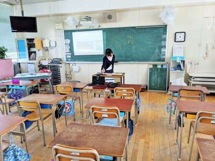 6年生は、誰もいない教室で、カメラに向かって授業をしました。