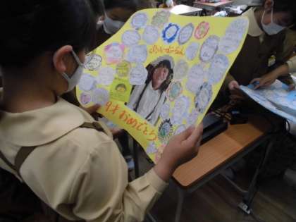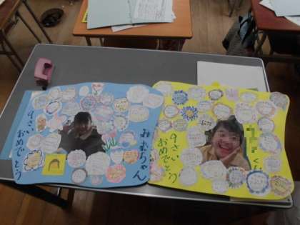3年生では、お誕生日の人に一人一枚ずつカードを書いて渡すことにしています。