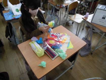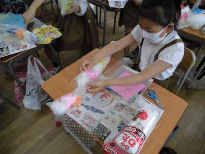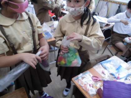 いろいろな材料を持ってきて、それぞれ工夫して作っていました。