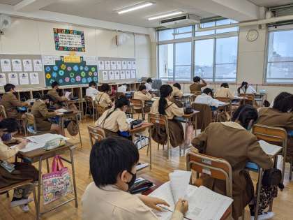 今日は5・6年生が「全国学力・学習状況調査」と「小学生すくすくテスト」を実施しています。降りしきる雨の音が聞こえています。自分の実力試しです。がんばれ!!