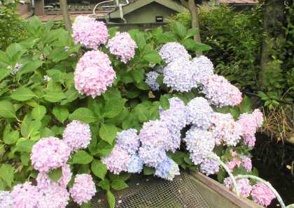 四貫島小学校には、四貫島の森があり、四季折々の草花が咲き誇っています。ちょうど今はアジサイが満開で、とても美しいです。