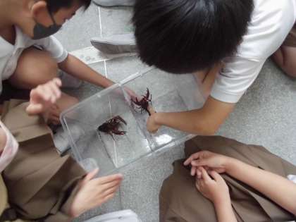 「思ったより大きい!」「はさみが怖い。」「お世話が楽しみ!」といろんな反応でしたが、たくさん愛情を注いで育ててほしいと思います。
